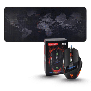 Mouse Pad Non slip rubber mouse pad Quick and responsiveness to your mouse Rubber base – Provides heavy grip preventing sliding or movement of mouse pad Smooth cloth surface – Optimized for fast movement Side stitched edges Size: 80 x 30cm M1 Mouse T-WOLF M1 Wired USB Gaming Mouse, Up-to 3200 DPI Optical Sensor, RGB…