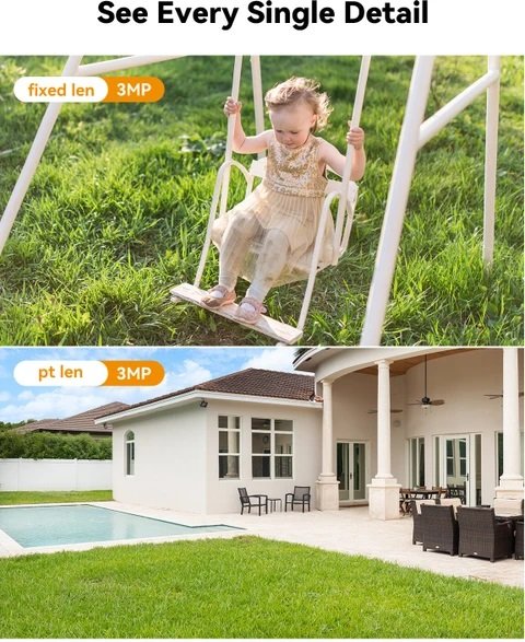- Resolution: 3 MP + 3 MP dual lenses (total ~6 MP) — Main stream 2304 × 1296 @15 fps.