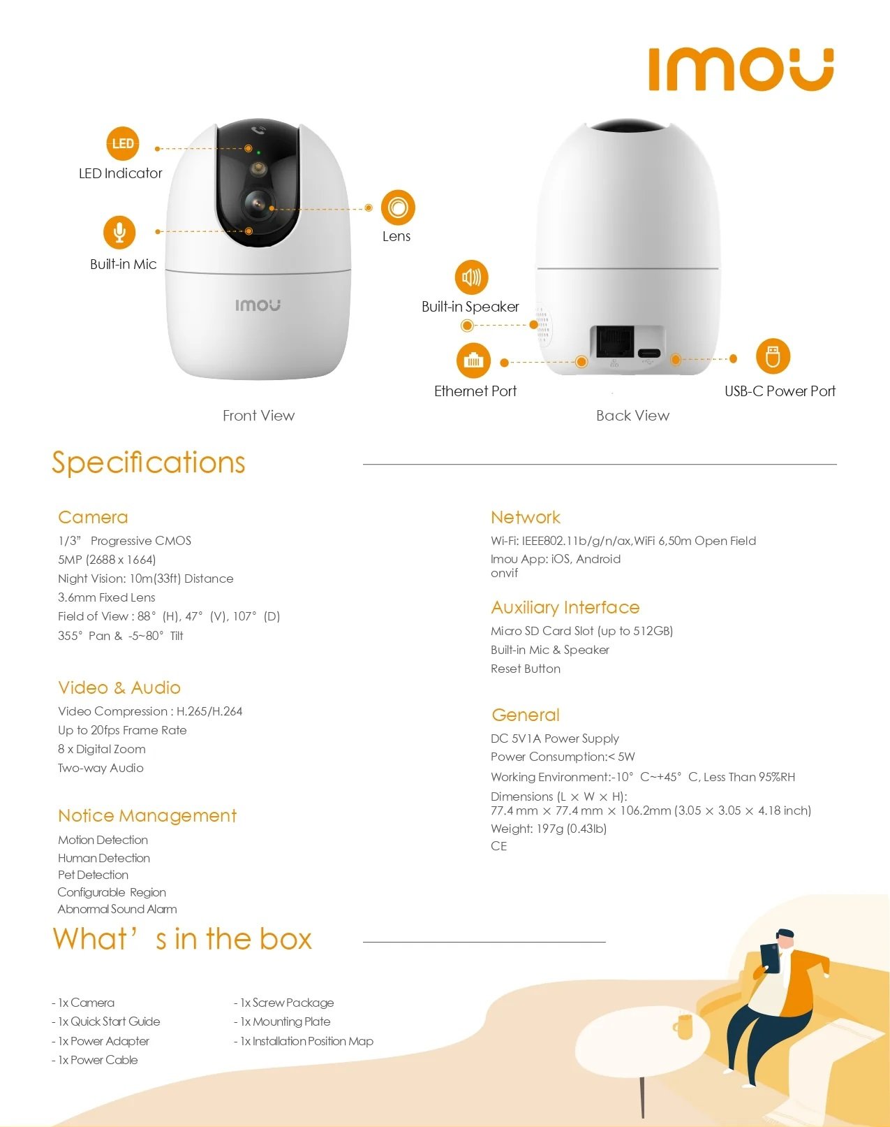 Imou Ranger 2 Pro 5MP Indoor Wi-Fi PT Camera – IPC-S2EP-3R1S