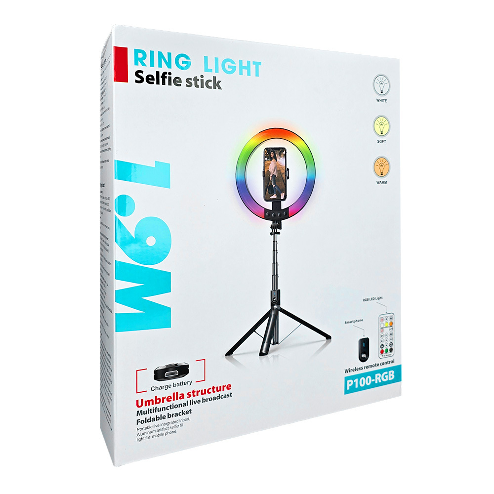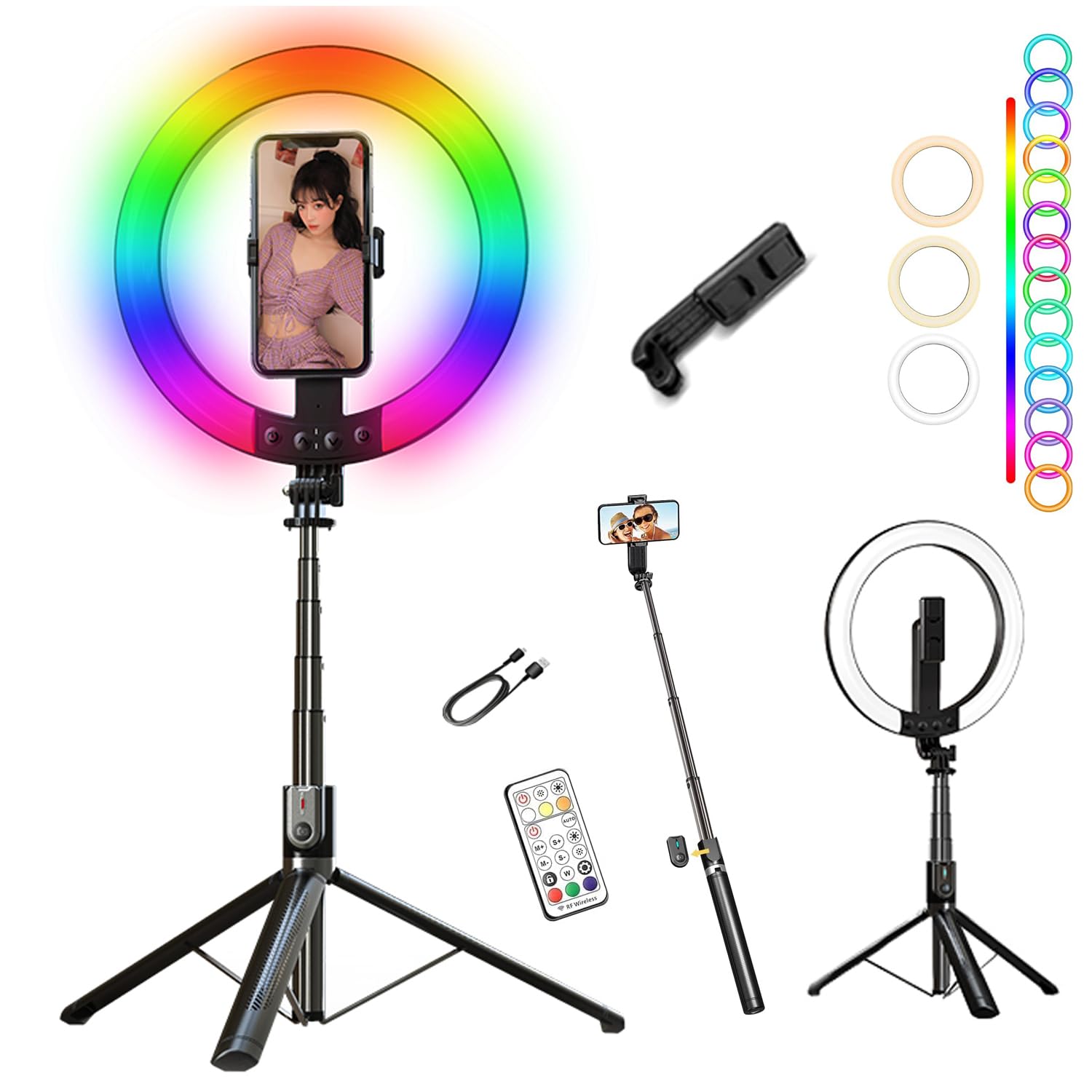 P100-RGB Ring Light Selfie Stick Tripod with 10 Inch