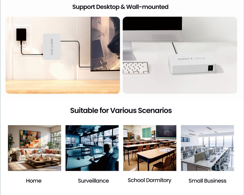 - Support desktop & wall mounted
